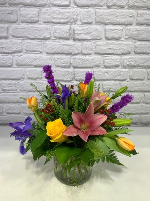 An absolutely stunning arrangement! We are very happy with how beautiful the arrangement is. Communication about delivery was also excellent.