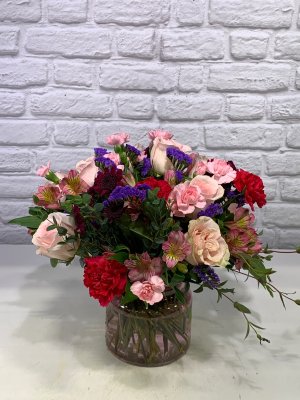 The flowers are beautiful. I wish they were arranged in a vase that would make the variety of flowers more visible and not so tightly placed together. They would be enjoyed for a longer time. Thank yo
