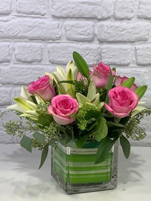 Beautiful arrangement and perfect gift! Delivered on time, and I appreciate the picture and updates!
