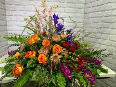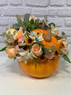 Beautiful arrangement for Halloween. Contained all autumn colors and brought uplift an uplift to the home.