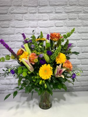 Absolutely gorgeous flower arrangement! The bright colors are perfect during these cold months.
