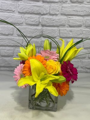 A gorgeous arrangement of the most fresh flowers with incredible color! Beautiful!!