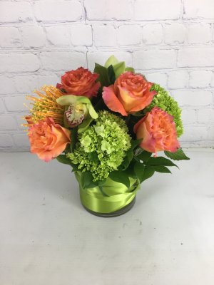 Flower arrangement is beautiful! Much appreciated because you listened to my request. Colorful roses & greens!