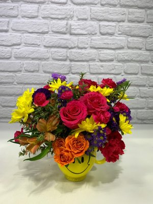 Beautiful exotic floral arrangement with balloon and teddy bear. It definitely made me smile and smells great. Thank you.