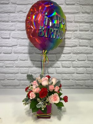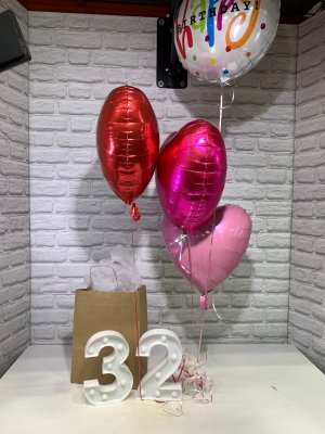 I expected more balloons for 117.00 but in don't like the red and if you can shorten the strings since numbers are small. Need to cluster the balloons more, happy birthday one to far from others. Maybe 2 more minutes f the pink's instead of red or