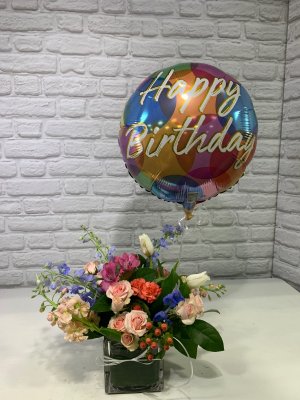 Flower arrangement is beautiful! Much appreciated because you listened to my request. Colorful roses & greens!