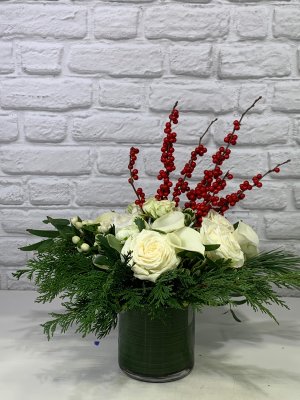 Flower arrangement is beautiful! Much appreciated because you listened to my request. Colorful roses & greens!