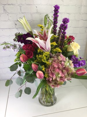 A gorgeous arrangement of the most fresh flowers with incredible color! Beautiful!!