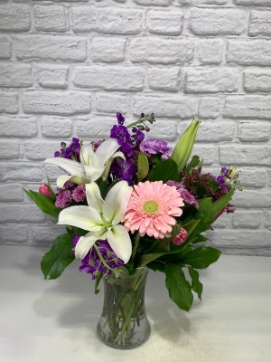 Beautiful! So much better than other bouquets I have received. I will only order flowers from here in the future. It was below zero when the flowers arrived. They communicated ahead of time so that I could meet the delivery driver at the door, thereby preserving the flowers. Excellent, professional work.