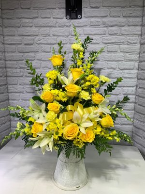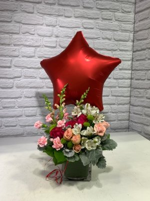Excellent arrangement! I called and asked for help to make a custom arrangement and they created this from scratch! What a great place to help out in a pinch. Thank you.