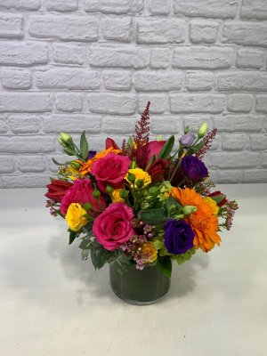Flower arrangement is beautiful! Much appreciated because you listened to my request. Colorful roses & greens!