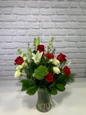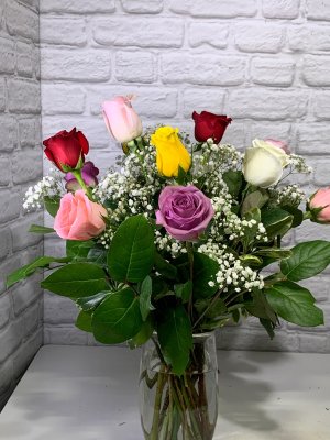 Flower arrangement is beautiful! Much appreciated because you listened to my request. Colorful roses & greens!