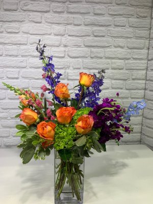 A gorgeous arrangement of the most fresh flowers with incredible color! Beautiful!!