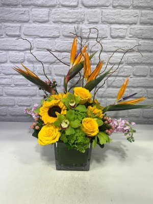 Beautiful arrangement with vibrant fresh flowers. The arrangements are consistently fresh, cheerful and artistic.