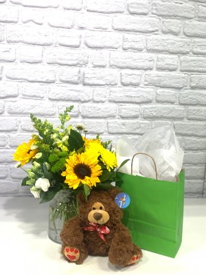 The flowers and teddy bear were just what I wanted. We had a glitch finding my friend in the hospital but our communication together was able to find her and get the gifts to her yet the same day. The photo of gifts was a huge benefit! Thank you!