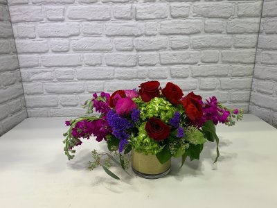 Flower arrangement is beautiful! Much appreciated because you listened to my request. Colorful roses & greens!