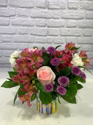 Beautiful arrangement with vibrant fresh flowers. The arrangements are consistently fresh, cheerful and artistic.