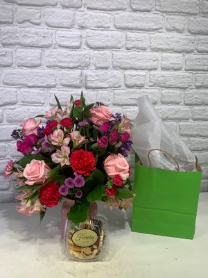 The flowers are beautiful. I wish they were arranged in a vase that would make the variety of flowers more visible and not so tightly placed together. They would be enjoyed for a longer time. Thank yo