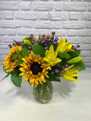 This looks like an arrangement with all cheep filler and one sunflower! What a disappointment after receiving an email with an upgrade promo.