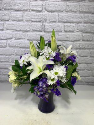 My Daughter loves purple this arrangement was perfect. Thank you for adding the color I requested
