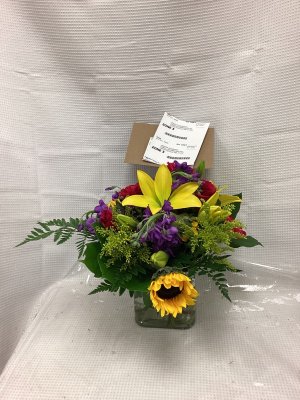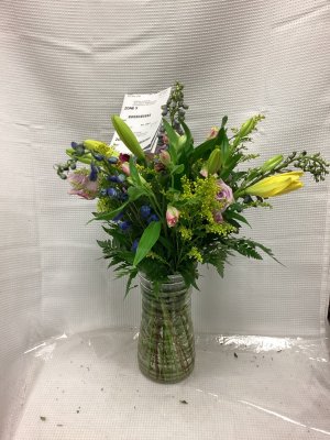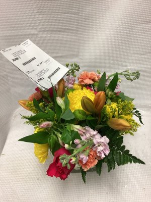Great arrangement!Loved the unopened lilies. Delivery person was delightful. Thank you