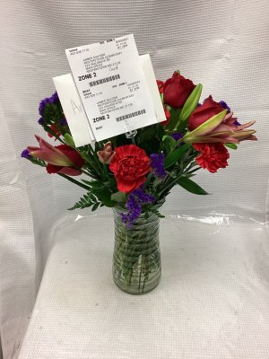 The flowers were lovely- the delivery guy was excellent. He made sure the flowers were not left out in these extremely cold temperatures! He's a keeper!!