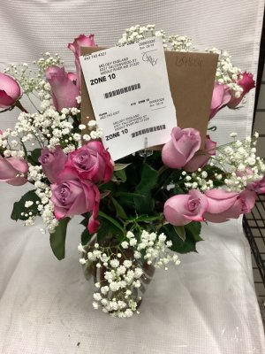 The roses were a beautiful color. I am disappointed with the arrangement. I understand it was Valentines day and you were probably overwhelmed with orders. However, the shortest stems were in the middle and the baby's breath placed outside of the roses clouded the overall effect. These flowers did not seem arranged as much as shoved into the vase.
