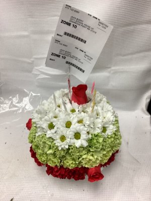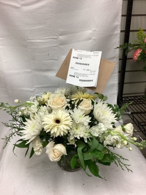 Pretty white and green arrangement in a nice white vase but the oasis was too large for the vessel and was sticking up over the edge making it hard to water the flowers. Oasis need to be soaked with water. Hard to just give it extra water daily as recommended . Not an easy arrangement to water. So after a few days, the hydranga stems were wilting in the oasis that was wet but not able to be soaked or vessel filled . I was called on my birthday Sunday, but my daughter who said the flowers could not be delivered on my birthday. So they arrived rd a day later, on a Monday. Do the flowers were not as fresh as on the day they were having stems cut and arranged into oasis. They look good but not sure if will last long.
