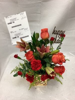 I loved the flowers especially the 4 roses that were in the arrangement thank You