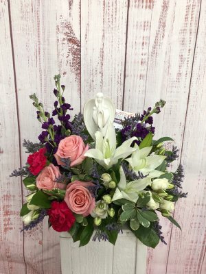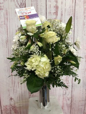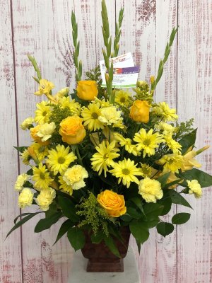 I love getting an actual photo of the sympathy arrangement I ordered since I wasn't able to attend the service. It's a beautiful arrangement with fresh & lovely flowers. My friends loved it! Thank you for taking so much time, care & pride to send a quality product.