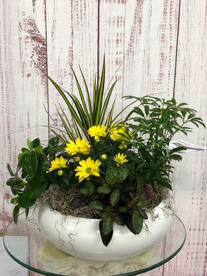 Not happy with the arrangement. This is nothing like the picture online of what I ordered. This is even after I called and they worked on it more. It should be vibrant and bright; this is just drab and gloomy looking.