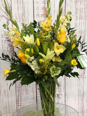 Beautiful arrangement for my aunt as yellow was her favorite color. I called the florist directly and they listened to my request.