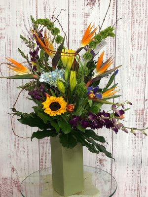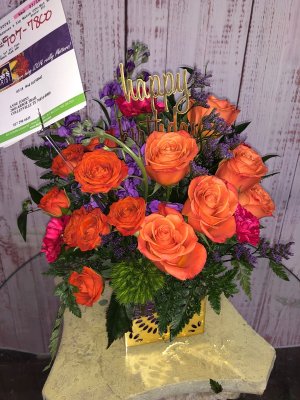 I love the arrangement yall did for me! It was exactly what I'd hoped for! They're fabulous! Beautiful! Happy & cheerful! They brightened up my day! Thank you!