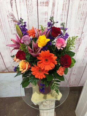 Beautiful Birthday arrangement for my wife. Excellent flowers & arrangement delivered quickly and courteously.