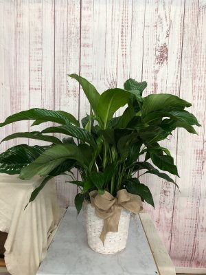 From what the picture shows the plant is a good size, looks very healthy. I'm happy to see white blooms. Thanks for adding a bow !!!