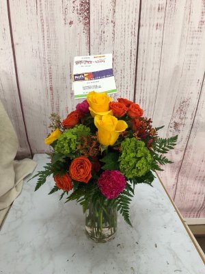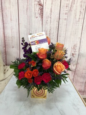 Thank you for delivering exactly what we ordered and on time. She loved the unique gift and the flowers were fresh and so cute.