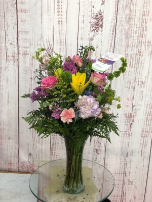 Disappointed with the size and wilted flowers of the arrangement. For the price I paid I would expect a better outcome.