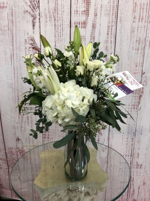 Sent flowers from out of state for a birthday and appreciated getting a pic of the finished arrangement! Flowers looked amazing and my sister loved them. Thank you!