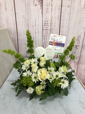 Very disappointed. No special baby vase and very few pink flower, pink carnations would of looked better. I rate it a 3.