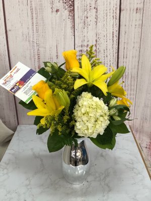 I was disappointed that the arrangement only had flowers on the front and the back was all greenery. Also, the hydrangeas are already dying only 3 days after delivery.