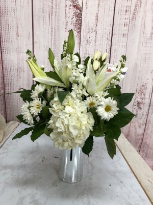 It's pretty but not quite as big, full or as many blooms as the one online. So a little disappointing for the price. But I suppose you can't always control the orders that are sent to you. I do like getting the photo. Thanks. (BTW my son has sent flowers to me from you several times and they're usually very nice. The only problem has been with hydrangeas which sometimes wilt for no apparent reason. I would like any advice about keeping them fresh. Thanks. )