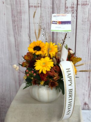 Your staff, Bridget, if I recall correctly, was as helpful as possible. She was polite, understanding & communicated clearly & well. I greatly appreciate her attention. The Birthday Arrangement was very pretty & nicely done. The only thing more I could have hoped for was more "flair & dazzle". Thank you.