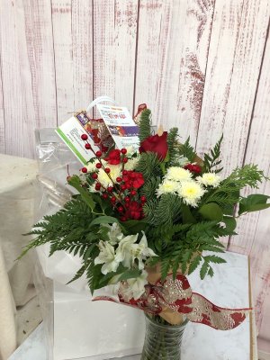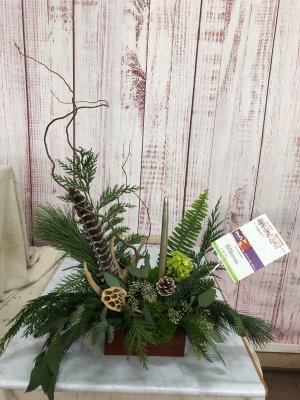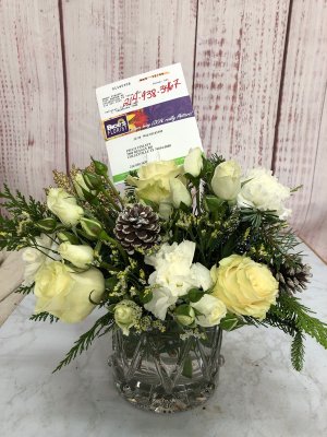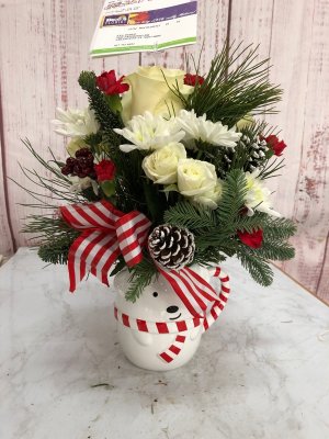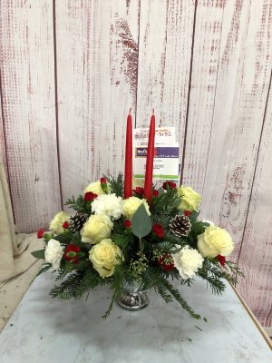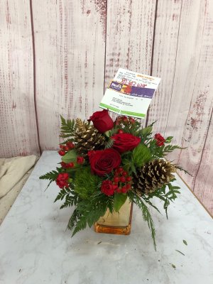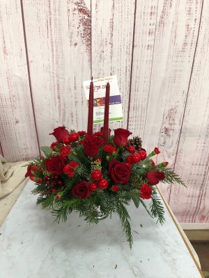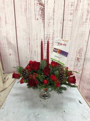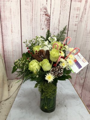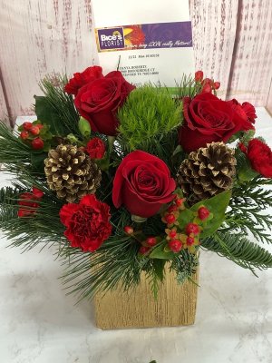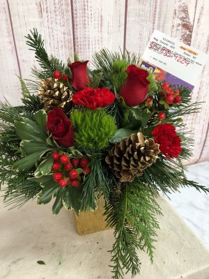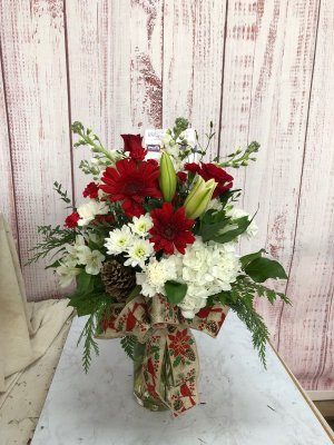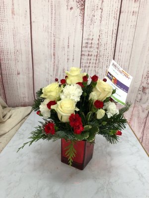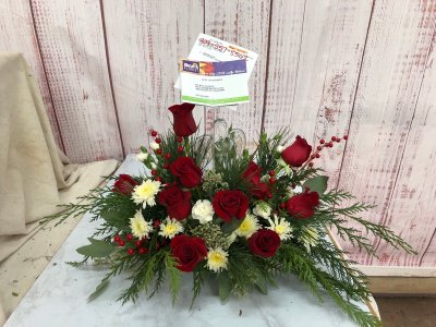 The holiday arrangement looks beautiful. It looks even better in person. Thank you!