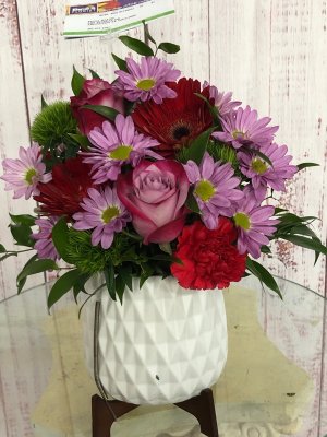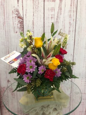 Recipient was thrilled, both with the bouquet as well as the vase. Gerbera daisies are her favorite and she felt special having them delivered to her workplace on her birthday