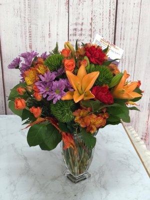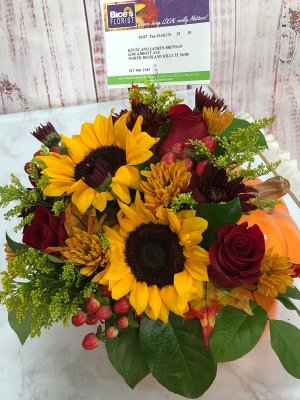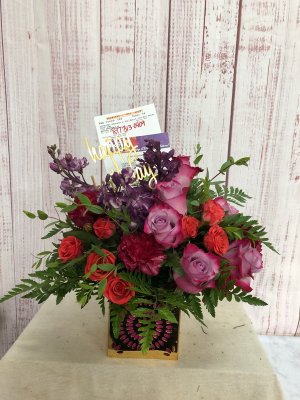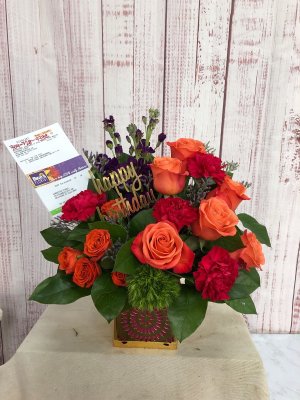The flowers look absolutely gorgeous such beautiful fall colors! I love the keepsake shimmering metallic cube. Thank you for helping to make my Texas sister's birthday extra memorable!