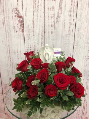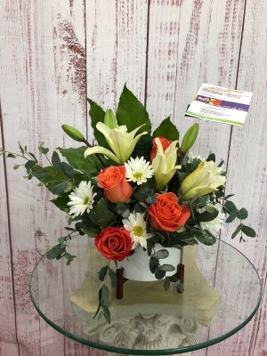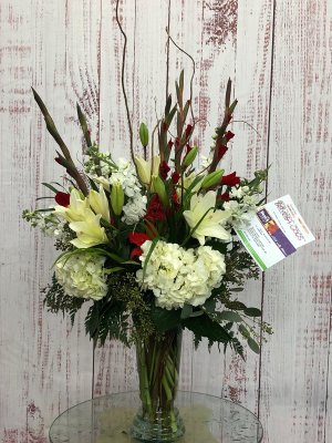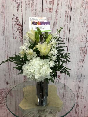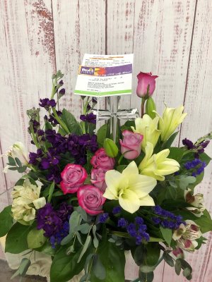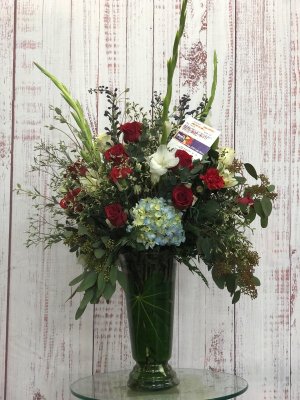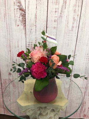 I'm sad to say that I'm NOT happy with this arrangement. It has pink roses in it and this order was for a man. I had ordered white, purple and blue flowers.