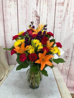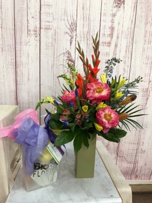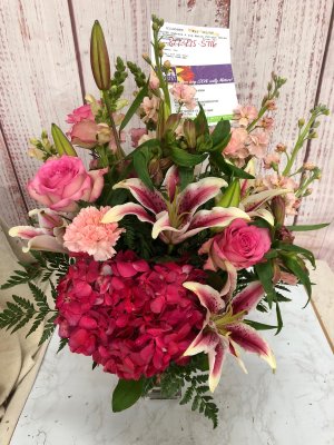 Oh thank u so much ! They are beautiful i could not be happier with the arrangement the beautiful fresh flowers and the care and service provided by Bices florist.