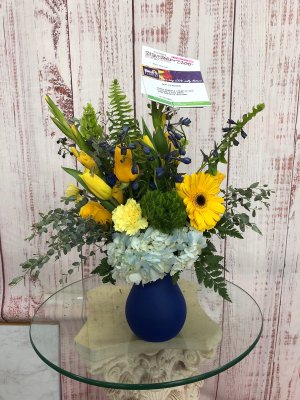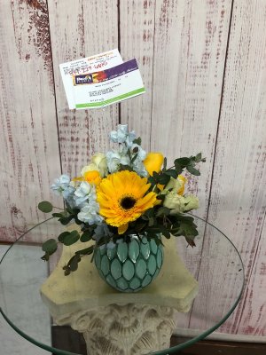 I would have liked a couple more white roses below the yellow daisies rather than just being in one spot. I am an artist though so I like your eye to move across whatever you are looking at. Just a suggestion.