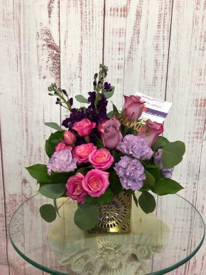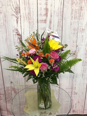 Sent flowers from out of state for a birthday and appreciated getting a pic of the finished arrangement! Flowers looked amazing and my sister loved them. Thank you!