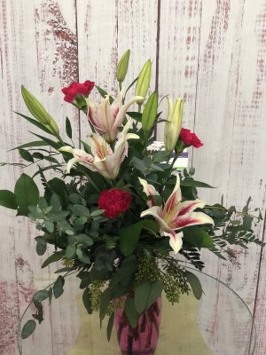 Recipient was thrilled, both with the bouquet as well as the vase. Gerbera daisies are her favorite and she felt special having them delivered to her workplace on her birthday